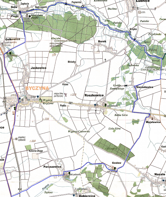 Opis granicy obwodu nr 9  "BYCZYNA": od rzeki Prosna granicą powiatu oleskiego i kluczborskiego w kierunku południowym do drogi gminnej i drogą tą na zachód do wsi Sierosławice. Stąd drogą powiatową nr 27307 na południe do drogi woj. nr 487 i tą drogą na wschód do Wojsławic. Następnie drogą powiatową nr 27310 w kierunku południowym do wsi Gosław, dalej w kierunku zachodnim drogą gminną, a następnie drogą powiatową nr 27308 przez Paruszowice do drogi krajowej nr 11 prowadzącej z Kluczborka do Byczyny. Drogą tą w kierunku północnym przez Biskupice do przecięcia z torem kolejowym, dalej torem tym do wsi Gołkowice, skąd drogą powiatową nr 27303 w kierunku północnowschodnim do drogi powiatowej nr 27311 Drogą tą na północ do granicy województwa we wsi Gola i granicą tą wzdłuż rzeki Prosna na wschód do punktu wyjściowego.