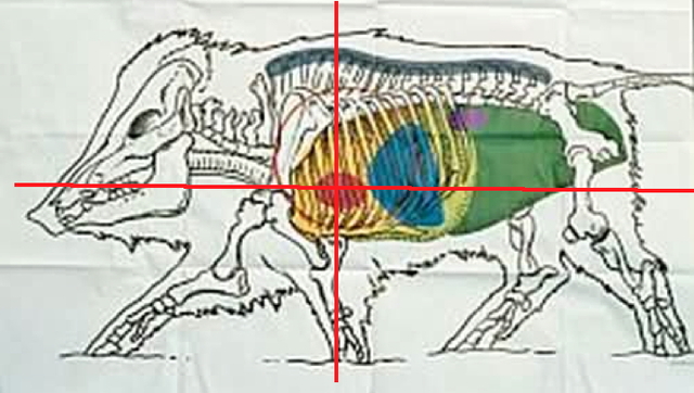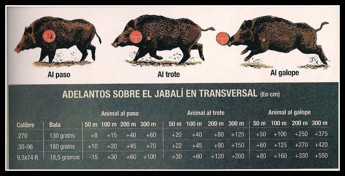 Zasady celowania (wyprzedzenia) do dzika na komorę w zależności od kalibru broni, odległości oraz ruchu dzika.